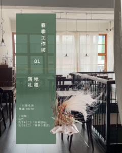 春節長假後,聚在咖啡店及書店空間中一起啟動落地行動的能量,一起用植物創作有「扎根」意象化的作品。